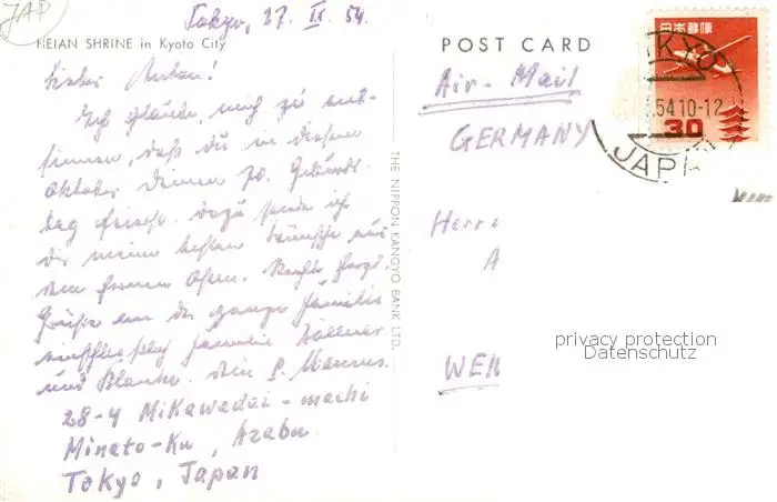 73826682 Kyoto_Japan Heian Shrine postalisch gelaufen 1954 Erhaltung siehe scans [WerneD78] [WernPID7 ]