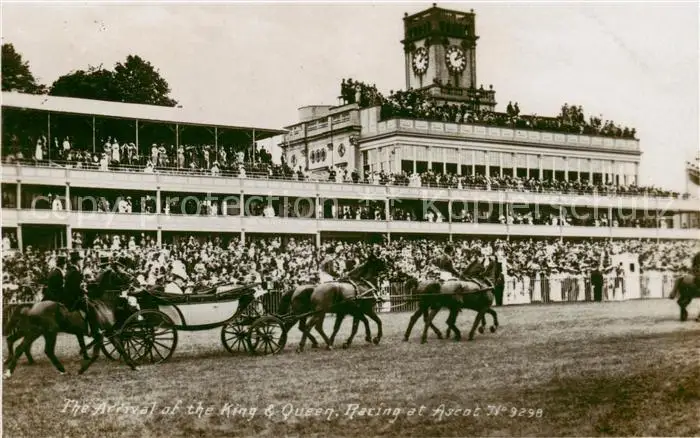 AK / Ansichtskarte 73831562 Ascot__UK The Arrival of the King and Queen Racing at Ascot