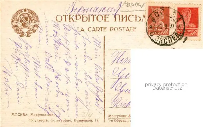 73832599 Moscow_Moskva Stadtplatz Moscow Moskva postalisch gelaufen 1927 Erhaltung siehe scans [WerneD78] [WernPID7 ]