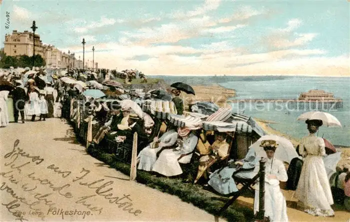 73832611 Folkestone_UK Strandpartie Promenade postalisch gelaufen 1905 Erhaltung siehe scans [WerneD78] [WernPID7 ]