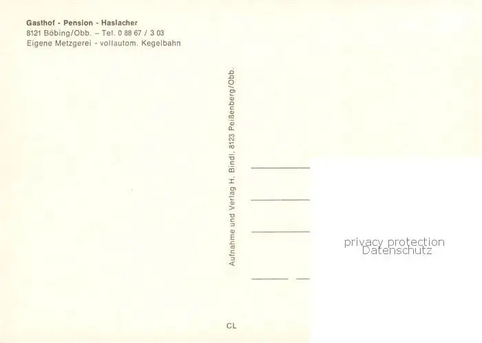 73835404 Boebing Gasthof Pension Haslacher Gaststube Zimmer Boebing postalisch nicht gelaufen nach 1965 Erhaltung siehe scans [WerneD78] [WernPID7 ]