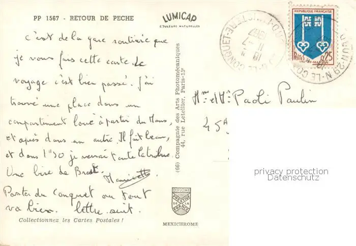 73837139 Fischerei Retour de Peche postalisch gelaufen 1967 Erhaltung siehe scans [IrynaD87] [Iryn PID ]