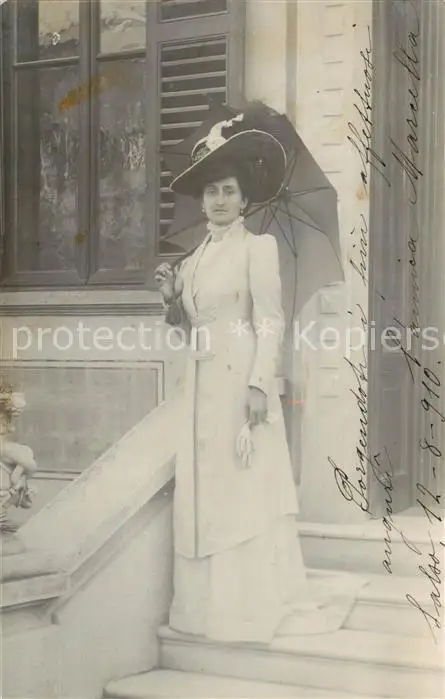 AK / Ansichtskarte 73837926 Hutmode Frau mit Schirm