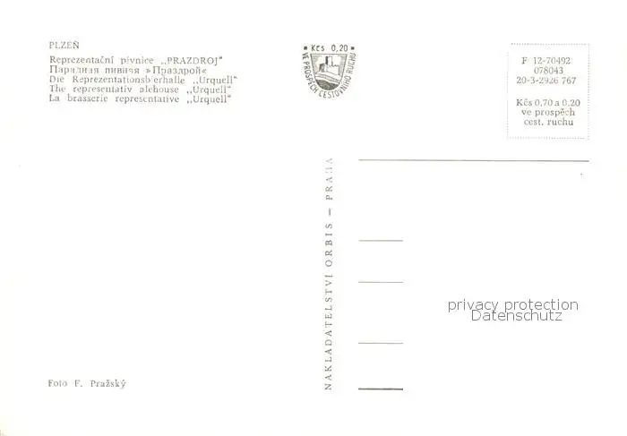 73839591 Plzen_Pilsen_CZ Reprezentacni pivnice Prazdroj postalisch nicht gelaufen 1921-1965 Erhaltung siehe scans [WerneD78] [WernPID7 ]