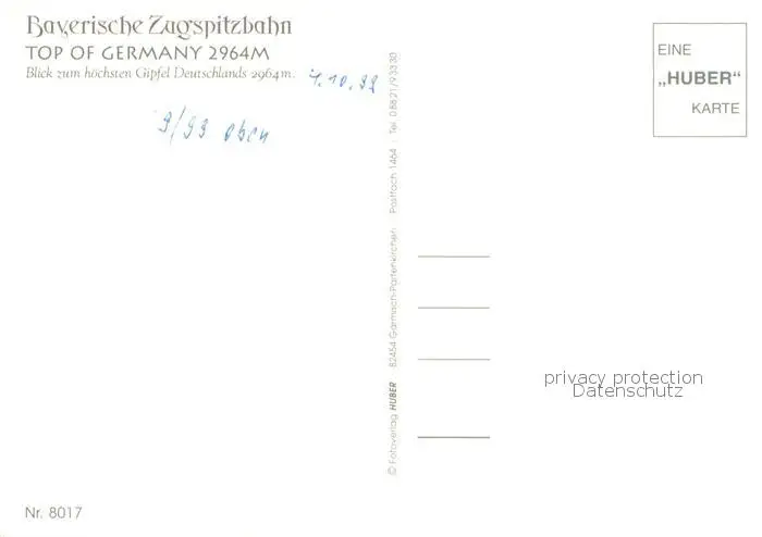 73847465 Zahnradbahn Bayerische Zugspitzbahn postalisch nicht gelaufen 1999 Erhaltung siehe scans [IrynaD87] [Iryn PID ]