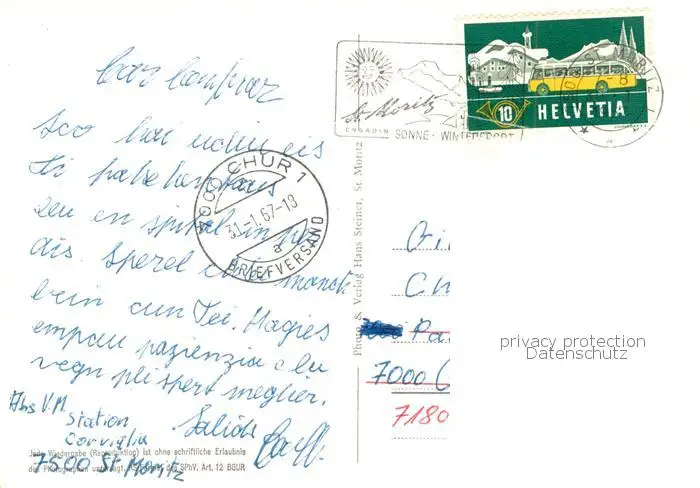 73847503 Zahnradbahn St.Moritz Corvigliabahn postalisch gelaufen 1967 Erhaltung siehe scans [IrynaD87] [Iryn PID ]