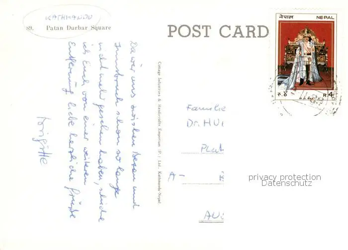 73847702 Patan Durbar Square Patan postalisch gelaufen 1989 Erhaltung siehe scans [WerneD78] [WernPID7 ]