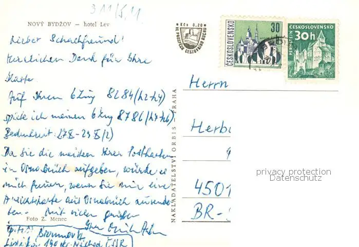73856382 Novy_Bydzov_CZ Hotel Lev postalisch gelaufen nach 1965 Erhaltung siehe scans [WerneD78] [WernPID7 ]