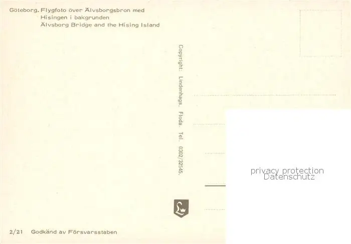73857165 Goeteborg aelvsborg Bridge and the Hising Island Goeteborg postalisch nicht gelaufen nach 1965 Fliegeraufnahme Erhaltung siehe scans [FriedD77] Fliegeraufnahme[Frierer ]