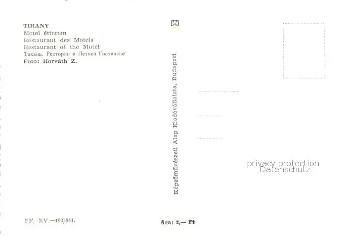 73857670 Tihany_HU Motel etterem postalisch nicht gelaufen nach 1965 Erhaltung siehe scans [WerneD78] [WernPID7 ]