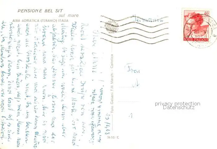 73857705 Teramo_IT Pensione Bel Sit Alba Adriatica postalisch gelaufen 1968 Erhaltung siehe scans [WerneD78] [WernPID7 ]