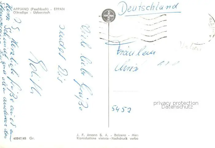 73857762 Appiano_Eppan_Suedtirol_IT ueberetsch postalisch gelaufen 1921-1965 Erhaltung siehe scans [FriedD77] [Frierer ]