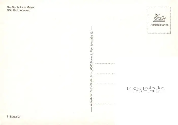 73865067 Mainz__Rhein Bischof von Mainz Karl Lehmann postalisch nicht gelaufen nach 1965 Erhaltung siehe scans [FriedD77] [Frierer ]