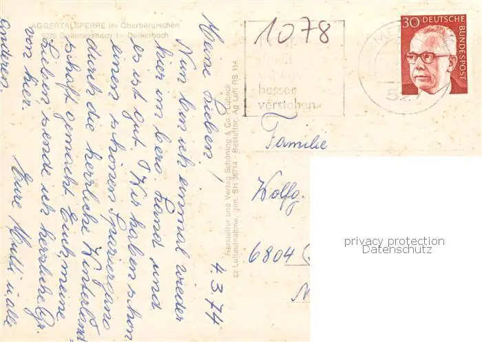 73866255 Aggertalsperre Fliegeraufnahme Aggertalsperre postalisch gelaufen 1974 Erhaltung siehe scans [WerneD78] [WernPID7 ]