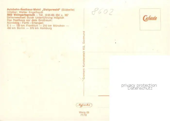 73867914 Weingartsgreuth Autobahn-Rasthaus-Motel Steigerwald Restaurant Weingartsgreuth postalisch nicht gelaufen 1971 Erhaltung siehe scans [FriedD77] [Frierer ]