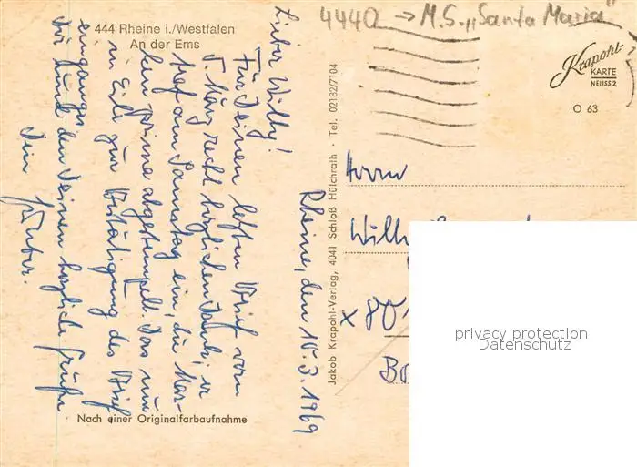 73870183 Rheine Emspartie MS Santa Maria Rheine postalisch gelaufen 1969 Erhaltung siehe scans [WerneD78] [WernPID7 ]