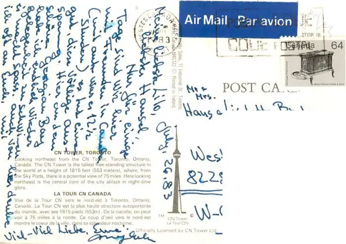 73881670 Toronto_Canada View from the CN Tower Toronto Canada postalisch gelaufen 1983 Erhaltung siehe scans [WerneD78] [WernPID7 ]
