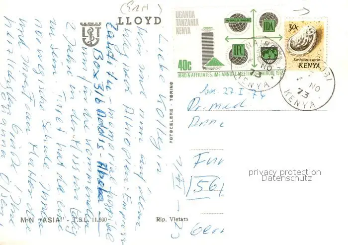 73892057 Schiffe_Oceanliner M.N Asia postalisch gelaufen 1973 Erhaltung siehe scans [NoemiD90] [NoemID90 ]