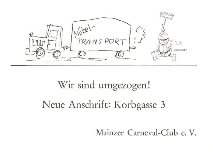 73922988 Mainz__Rhein Mainzer Carneval Club Umzug Moebel Transport postalisch nicht gelaufen nach 1965 Erhaltung siehe scans [WerneD78] [WernPID7 ]