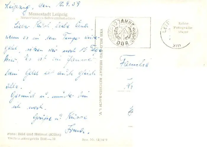 73924032 Leipzig Schwimmstadion postalisch gelaufen 1959 Erhaltung siehe scans [WerneD78] [WernPID7 ]