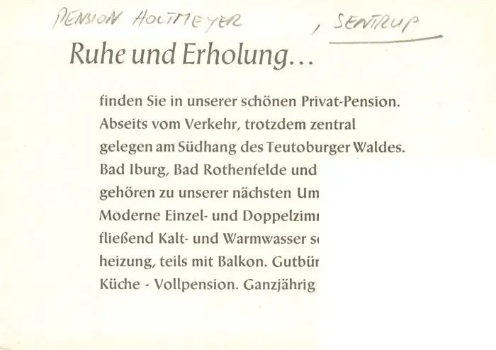 73924256 Sentrup Pension Holtmeyer postalisch nicht gelaufen nach 1965 Werbekarte (keine Postkarte) Erhaltung siehe scans [FriedD77] Werbekarte (keine Postkarte)[Frierer ]