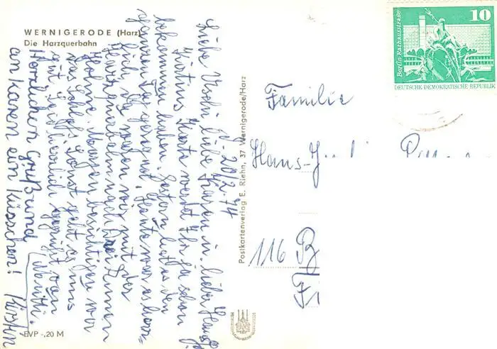 73924566 Wernigerode_Harz Die Harzquerbahn postalisch gelaufen nach 1965 Erhaltung siehe scans [WerneD78] [WernPID7 ]