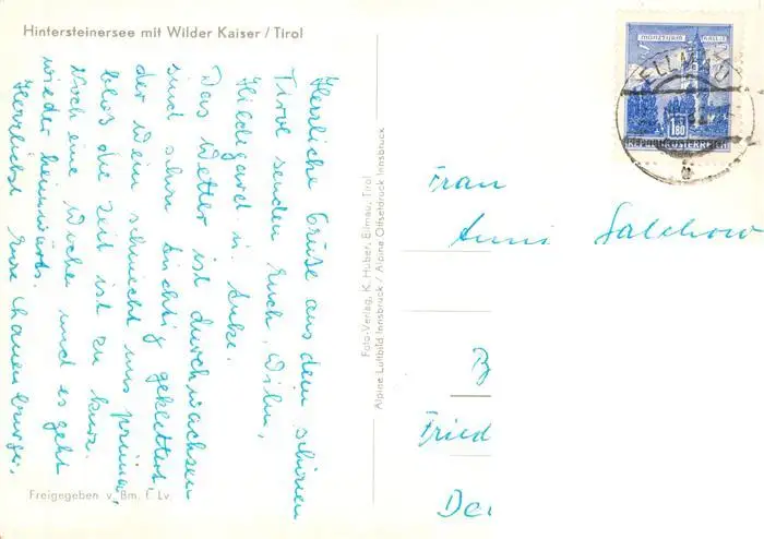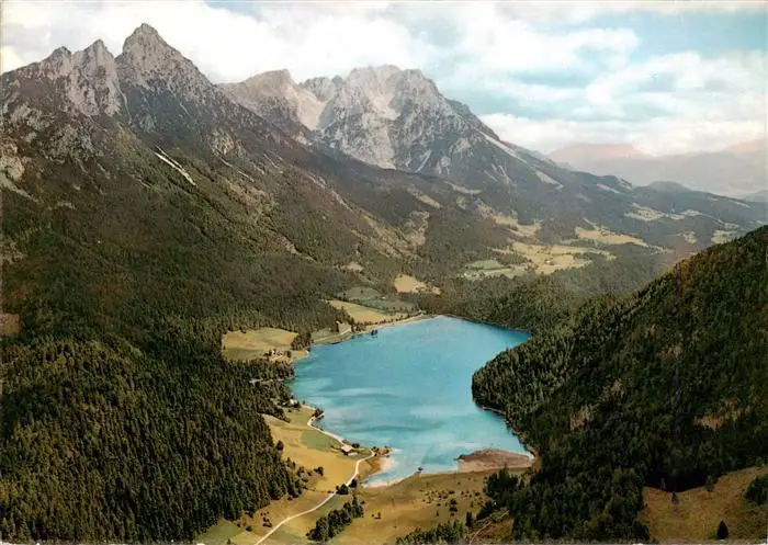 73946082 Hintersteinersee_Scheffau_Tirol_AT mit Wilder Kaiser Kaisergebirge postalisch gelaufen 1962 Fliegeraufnahme Erhaltung siehe scans [FriedD77] Fliegeraufnahme[Frierer ]
