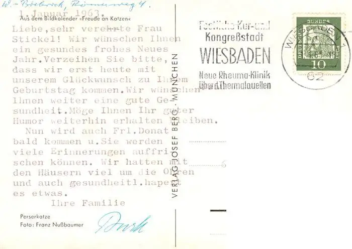 73959000 Katzen Perserkatze postalisch gelaufen 1963 Erhaltung siehe scans [IrynaD87] [Iryn PID ]