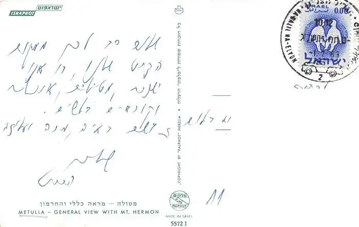 73983351 Metulla_Israel General view with Mount Hermon aerial view postalisch gelaufen 1963 Fliegeraufnahme Erhaltung siehe scans [FriedD77] Fliegeraufnahme[Frierer ]