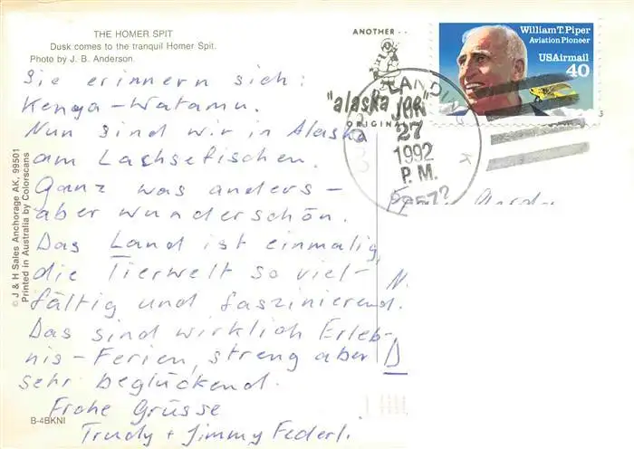 73997869 Homer_Alaska The Homer Spit postalisch gelaufen 1992 Erhaltung siehe scans [WerneD78] [WernPID7 ]