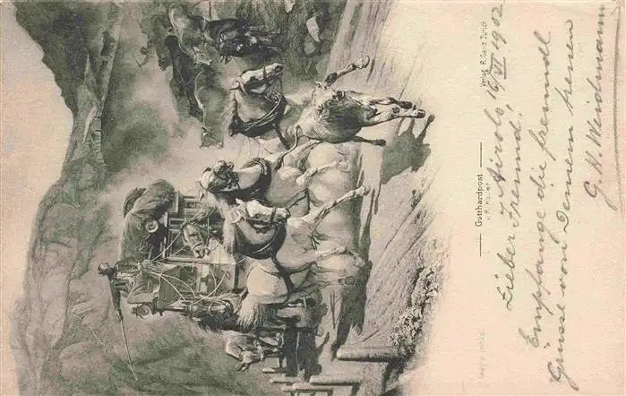 73999035 Postkutsche Gotthardpost litho postalisch gelaufen 1902 Erhaltung siehe scans [IrynaD87] [Iryn PID ]