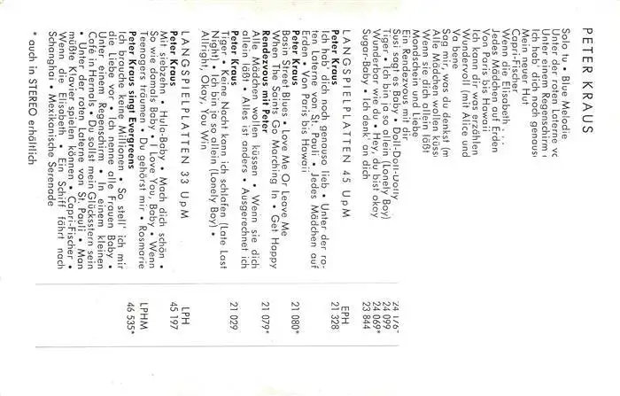 74002557 Musikanten Peter Kraus Polydor Autogramm postalisch nicht gelaufen 1921-1965 Erhaltung siehe scans [IrynaD87] [Iryn PID ]
