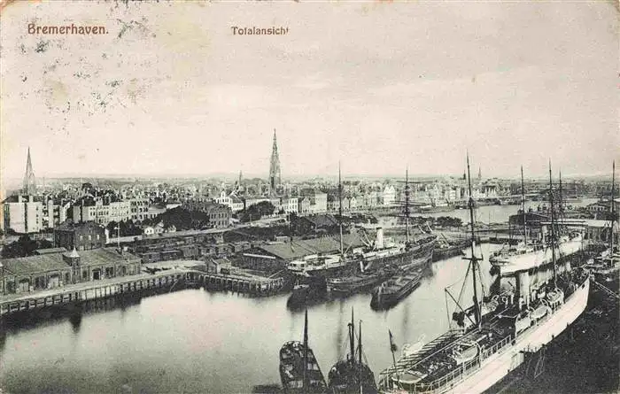 alte Postkarte 74014528 BREMERHAVEN Totalansicht Hafen postalisch gelaufen Erhaltung siehe scans [FriedD77]