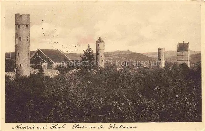 alte Postkarte 74030547 Neustadt Saale Partie an der Stadtmauer postalisch gelaufen Erhaltung siehe scans [FriedD77]