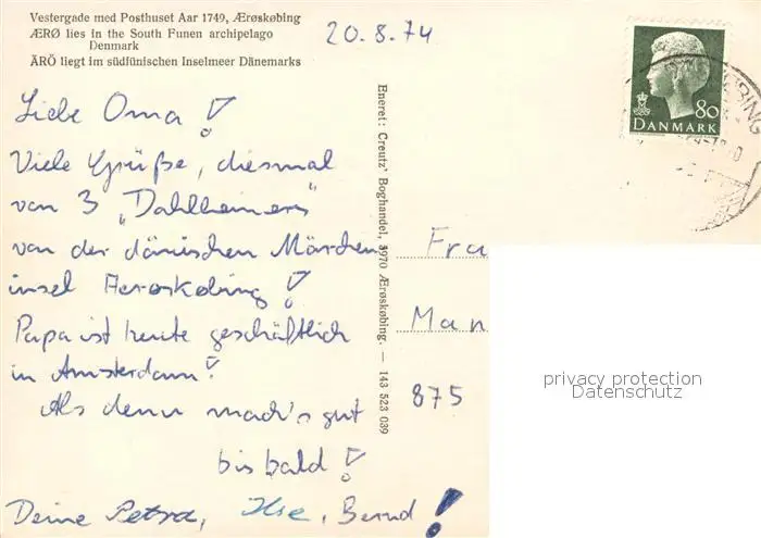 Aeroskobing Vestergade med Posthuset Aeroskobing postalisch gelaufen 1974 Erhaltung siehe scans [WerneD78] WernPID7