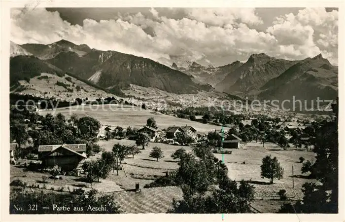 Aeschi_BE Gesamtansicht mit Alpenpanorama Aeschi_BE postalisch gelaufen 1921-1965 Feldpost Erhaltung siehe scans [FriedD77] Feldpost Frierer