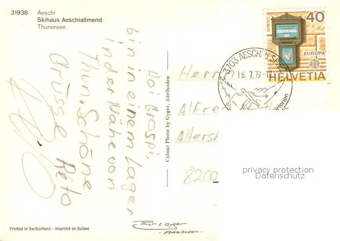 Aeschi_BE Skihaus Aeschiallmend Thunersee Aeschi_BE postalisch gelaufen 1979 Erhaltung siehe scans [LiesaD40] LiesID40
