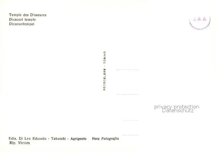 Agrigento Tempio dei Dioscuri Agrigento postalisch nicht gelaufen 1921-1965 Erhaltung siehe scans [WerneD78] WernPID7