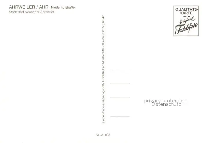 Ahrweiler_Ahr Niederhutstra?e Ahrweiler_Ahr postalisch nicht gelaufen nach 1965 Erhaltung siehe scans [KathaD81] Kathoren