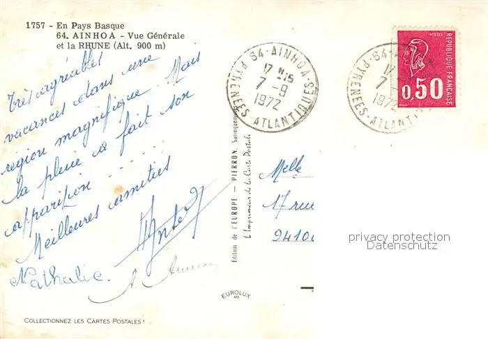 Ainhoa Rhune Ainhoa postalisch gelaufen 1972 Erhaltung siehe scans [PaolaD17] PaolPID1
