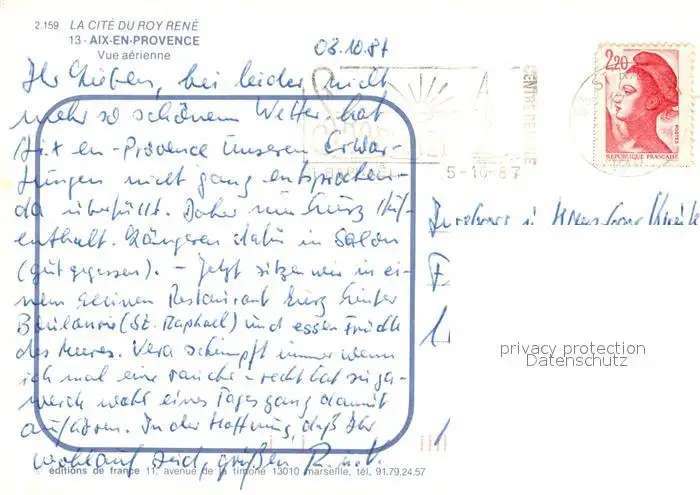 Aix-en-Provence Vue aérienne Aix-en-Provence postalisch gelaufen 1987 Erhaltung siehe scans [FriedD77] Frierer