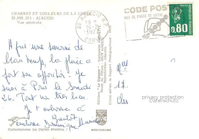 Ajaccio Stadtpanorama Ajaccio postalisch gelaufen 1977 Erhaltung siehe scans [KathaD81] Kathoren
