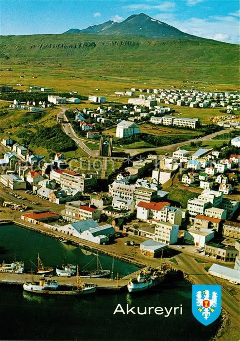 Akureyri Aerial view Akureyri postalisch nicht gelaufen nach 1965 Erhaltung siehe scans [FriedD77] Frierer