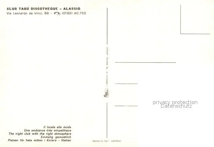 Alassio Club Tabu Discotheque Alassio postalisch nicht gelaufen nach 1965 Erhaltung siehe scans [FriedD77] Frierer