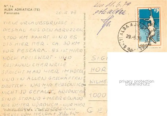 Alba_Adriatica Fliegeraufnahme mit Strand Alba Adriatica postalisch gelaufen 1979 Erhaltung siehe scans [LiesaD40] LiesID40