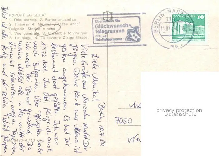 Albena Panorama Folklore Strand Taverne Albena postalisch gelaufen 1984 Erhaltung siehe scans [FriedD77] Frierer