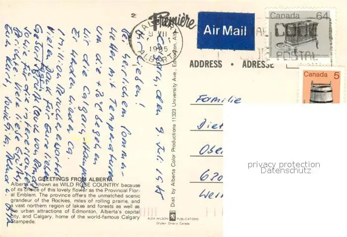 Alberta Wild Rose the Provincial Flower Alberta postalisch gelaufen 1985 Erhaltung siehe scans [WerneD78] WernPID7