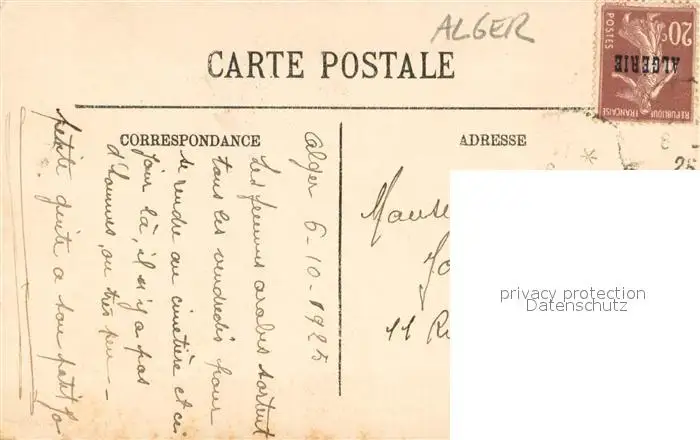 Alger_Algerien Cemetiere Alger Algerien postalisch gelaufen 1925 Erhaltung siehe scans [WerneD78] WernPID7