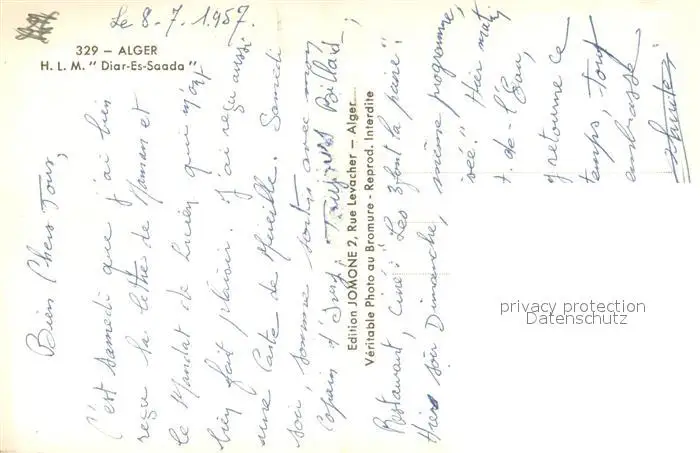 Alger_Algerien HLM Diar Es Saada Alger Algerien postalisch nicht gelaufen 1957 Erhaltung siehe scans [WerneD78] WernPID7