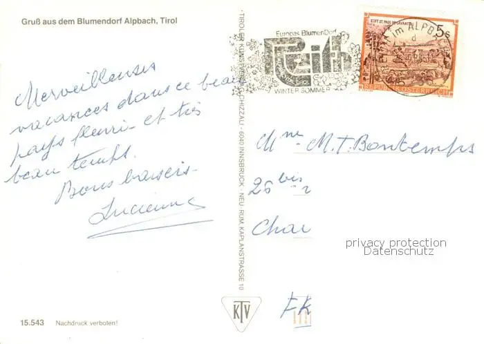 Alpbach Ortspartie Alpbach postalisch gelaufen 1983 Erhaltung siehe scans [FriedD77] Frierer